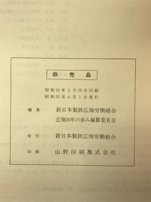タイトル:広畑30年の歩み -広畑労働組合30年史- 発行:新日本製鉄広畑労働組合 昭和51年 【非売品】