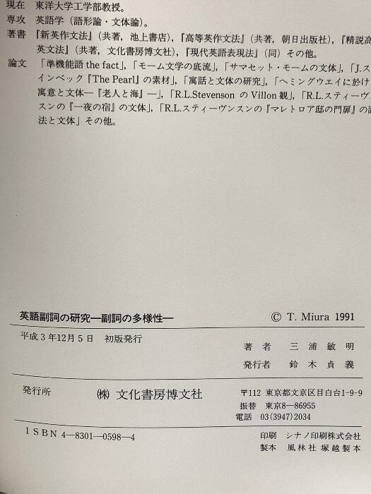 タイトル:英語副詞の研究: 副詞の多様性 文化書房博文社 三浦 敏明