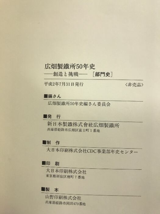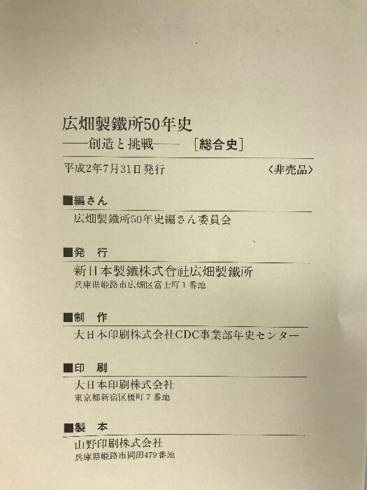 創造と挑戦 広畑製鐵所50年史 (総合史・部門史/全2冊セット) 発行:新日本製鉄株式会社広畑製鉄所 平成2年 【非売品】