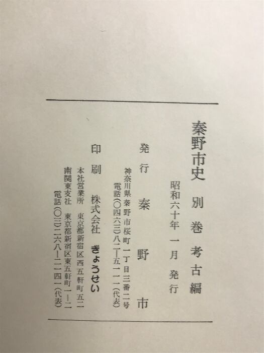 タイトル:秦野市史(別巻/考古編)神奈川県 発行:秦野市 昭和60年