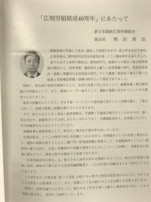 広畑40年の歩み -広畑労働組合40年史- 新日本製鉄広畑労働組合 発行:新日本製鉄広畑労働組合 昭和60年 【非売品】
