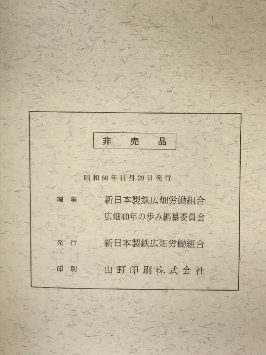 タイトル:広畑40年の歩み -広畑労働組合40年史- 新日本製鉄広畑労働組合 発行:新日本製鉄広畑労働組合 昭和60年 【非売品】