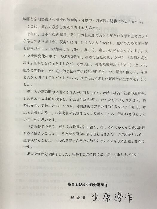 広畑50年の歩み 新日本製鉄広畑労働組合 発行:新日本製鉄広畑労働組合 平成7年 【非売品】