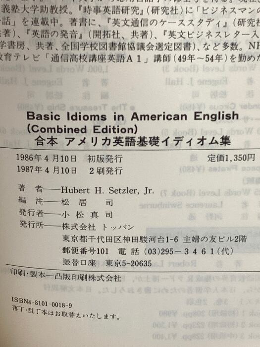 合本 アメリカ英語基礎イディオム集 トッパン ヒューバート・H.セツラー