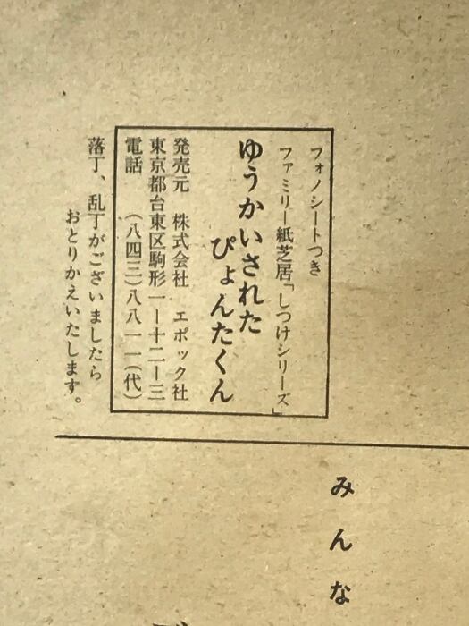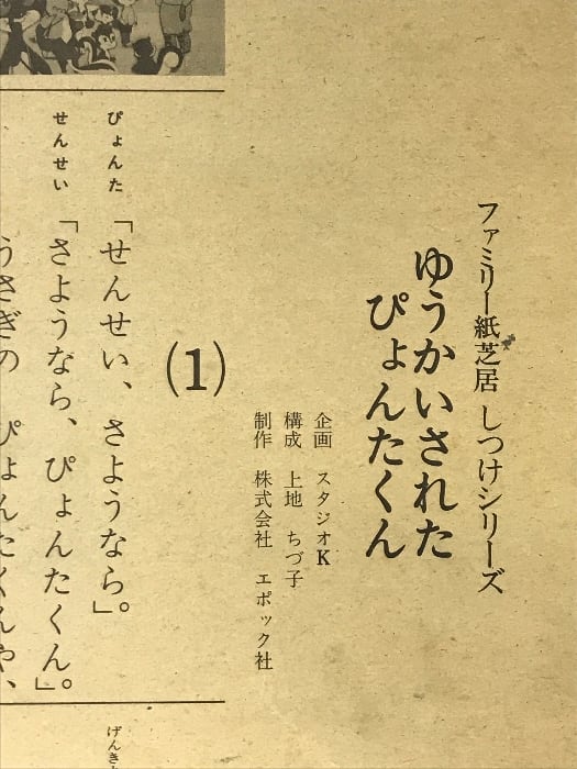 タイトル:(6)ファミリー紙芝居 しつけシリーズ37 ゆうかいされたピョンタくん 発行:エポック社