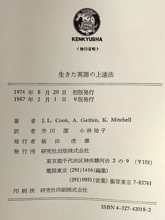 タイトル:生きた英語の上達法 文法・語法の重点チェック 研究社 J.L.クック