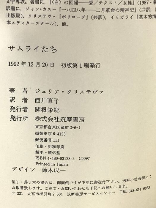 サムライたち 筑摩書房 ジュリア クリステヴァ