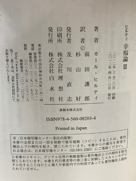 ヒルティ 幸福論 3 (新装版) 白水社 カール ヒルティ