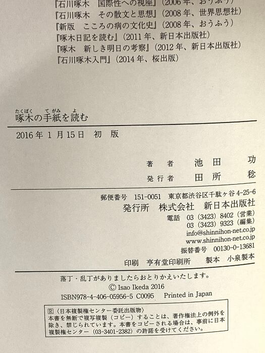 タイトル:啄木の手紙を読む 新日本出版社 池田 功