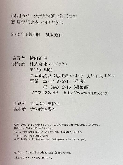 タイトル:おはようパーソナリティ道上洋三です 35周年記念本 ハイ! どうじょ ワニブックス 朝日放送株式会社
