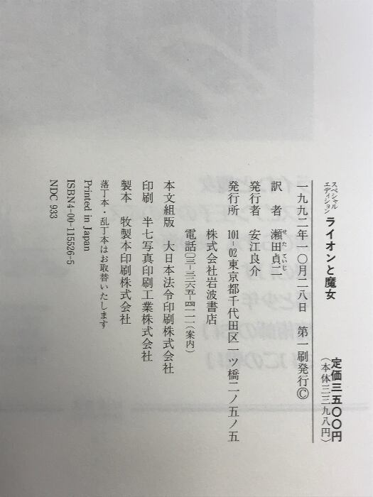 (1)ライオンと魔女 スペシャルエディション 岩波書店 C.S.ルイス:作 瀬田貞二:訳 1992年
