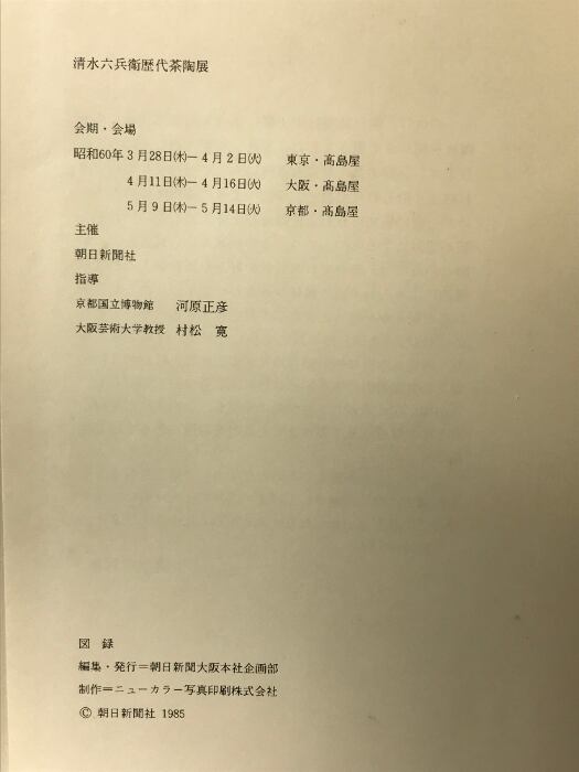 【図録】清水六兵衛歴代茶陶展 発行:朝日新聞社大阪本社企画部 昭和60年