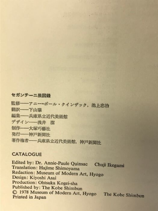 タイトル:【図録】セガンチーニ展 Giovanni SEGANTINI 発行:神戸新聞社 編:兵庫県立近代美術館 1978年