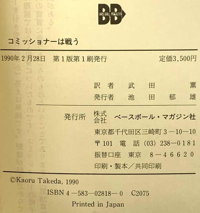 タイトル:コミッショナーは戦う ベースボール・マガジン社 ボウイ キューン