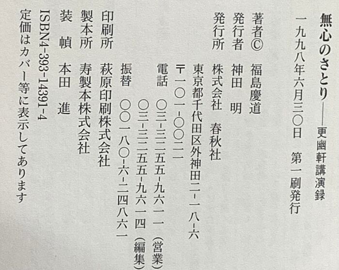 無心のさとり 春秋社 福島 慶道