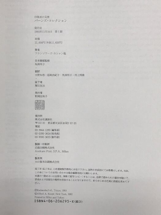 タイトル:【図録】印象派の宝庫「バーンズ・コレクション」封印された名画群 幻のバーンズ・コレクション 講談社 1993年