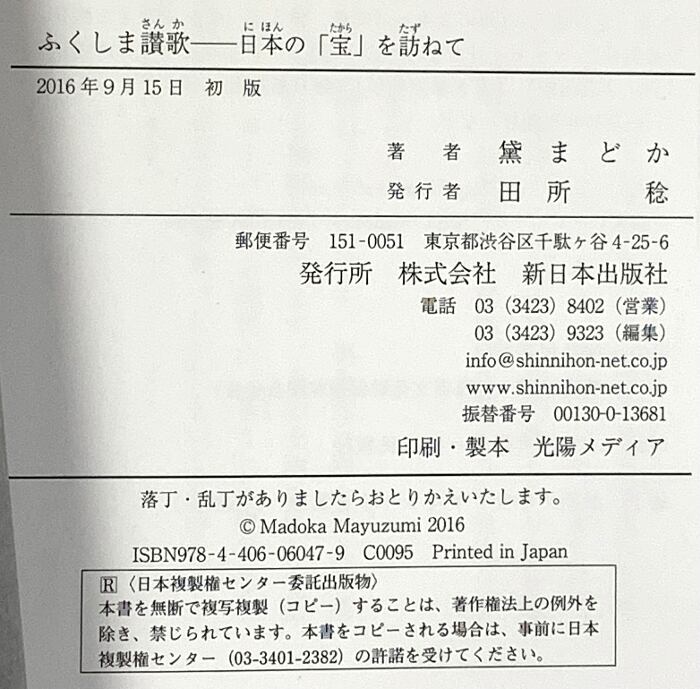 タイトル:ふくしま讃歌―日本の「宝」を訪ねて 新日本出版社 黛 まどか