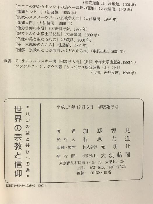タイトル:世界の宗教と信仰: 八つの型と共存への道 大法輪閣 加藤 智見