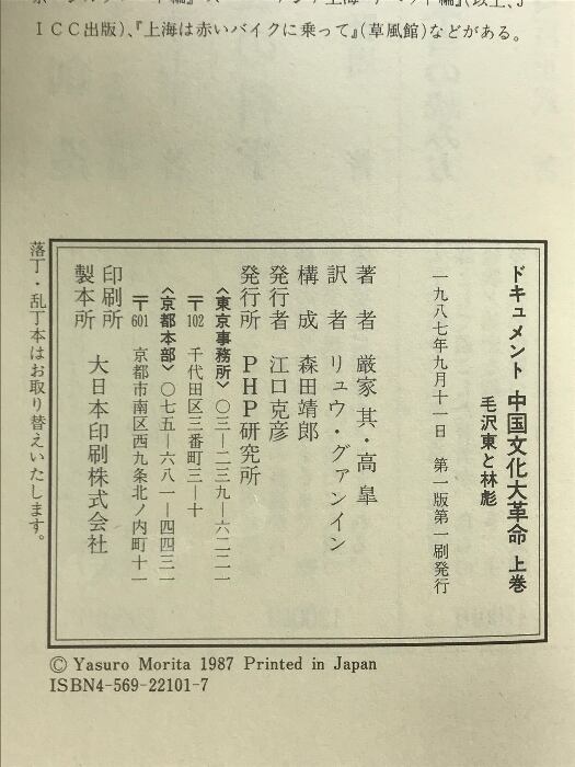 タイトル:中国文化大革命: ドキュメント (上巻) PHP研究所 厳 家其
