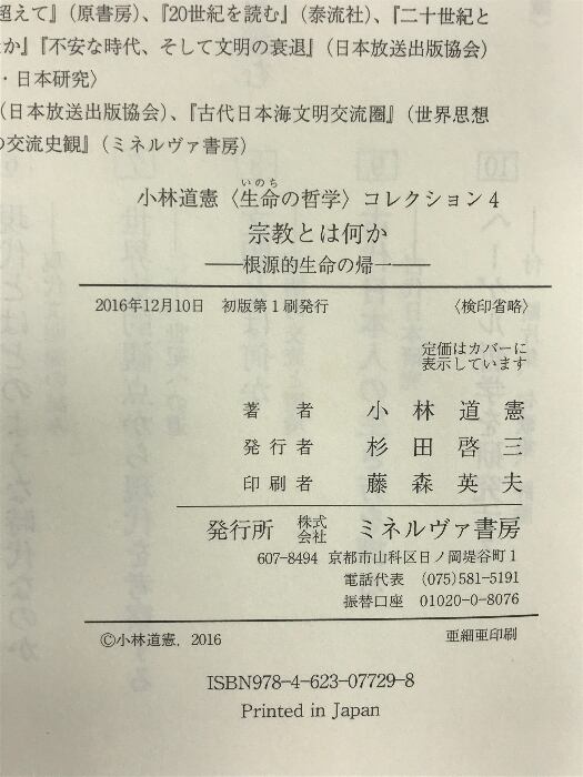 タイトル:宗教とは何か:根源的生命への帰一 (小林道憲〈生命の哲学〉コレクション) ミネルヴァ書房 小林道憲