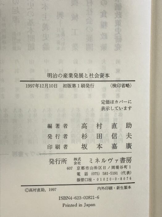 タイトル:明治の産業発展と社会資本 ミネルヴァ書房 高村 直助