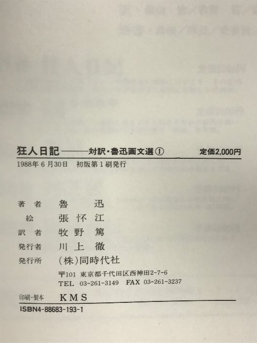 タイトル:対訳/魯迅画文選集 (1) 狂人日記 訳:牧野篤 監修:横山宏
