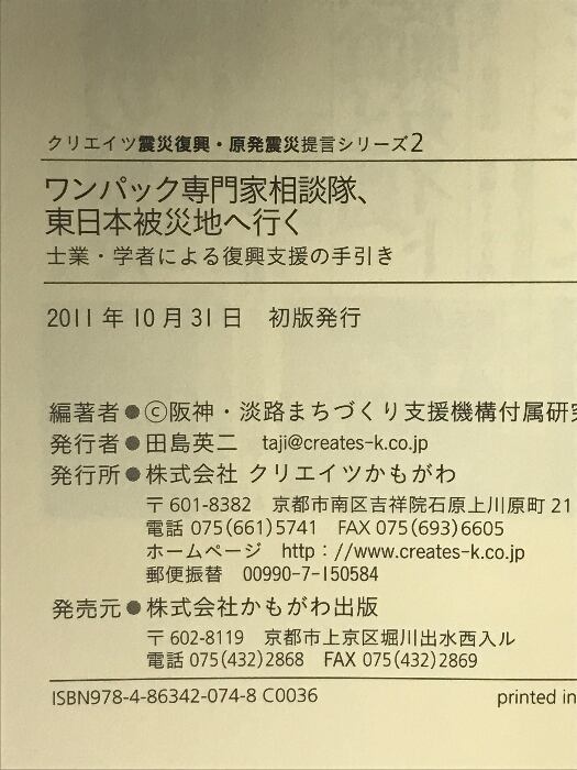 タイトル:ワンパック専門家相談隊、東日本被災地を行く―士業・学者による復興支援の手引き クリエイツかもがわ 阪神・淡路まちづくり支援機構附属研究会