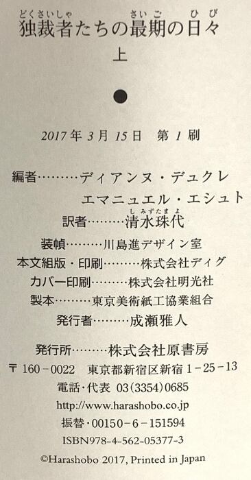 タイトル:独裁者たちの最期の日々 (上) 原書房 ディアンヌ・デュクレ