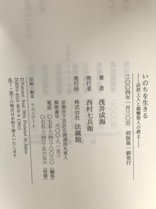 タイトル:いのちを生きる 法然上人と親鸞聖人のみ教え 法蔵館 浅井 成海