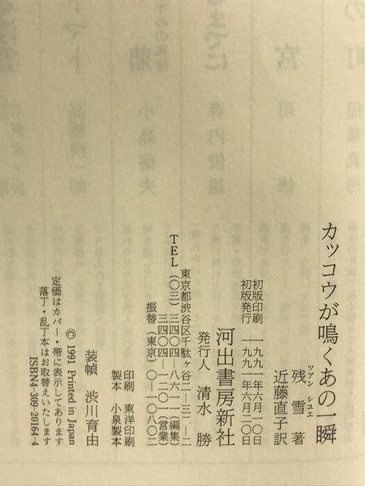 タイトル:カッコウが鳴くあの一瞬 河出書房新社 残 雪