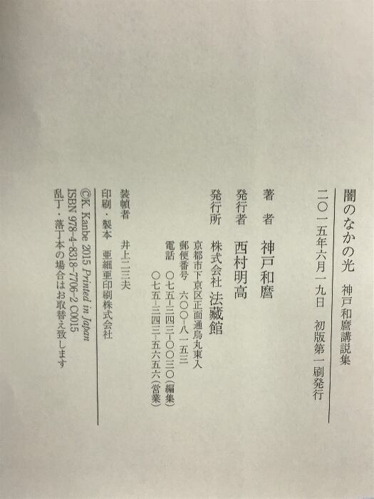 タイトル:闇のなかの光 法蔵館 神戸 和麿