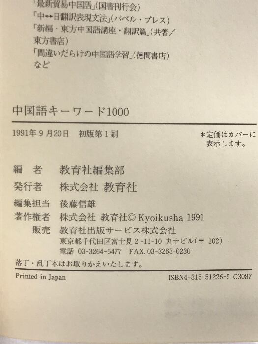 タイトル:中国語キ-ワ-ド1000: 中国語単語トレ-ニングペ-パ-のハンディ-版 ニュートンプレス 教育社