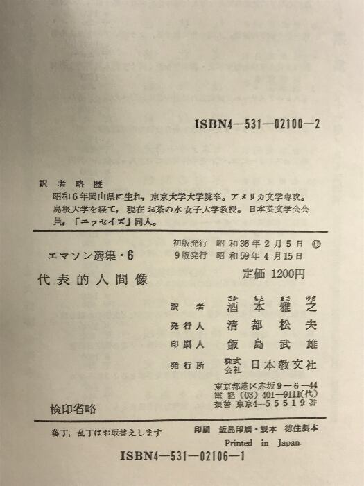 タイトル:エマソン選集 6 日本教文社 エマソン 酒本雅之:訳