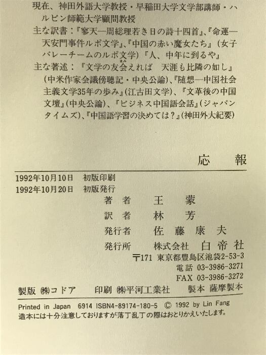 タイトル:応報 白帝社 王 蒙