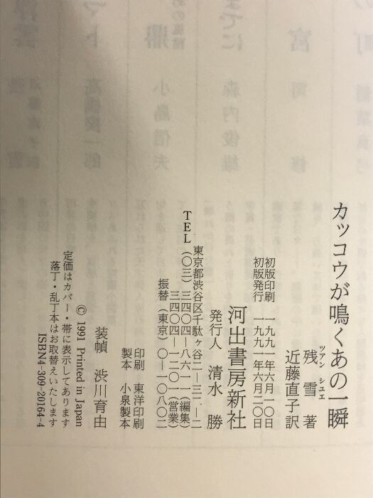 タイトル:カッコウが鳴くあの一瞬 河出書房新社 残 雪