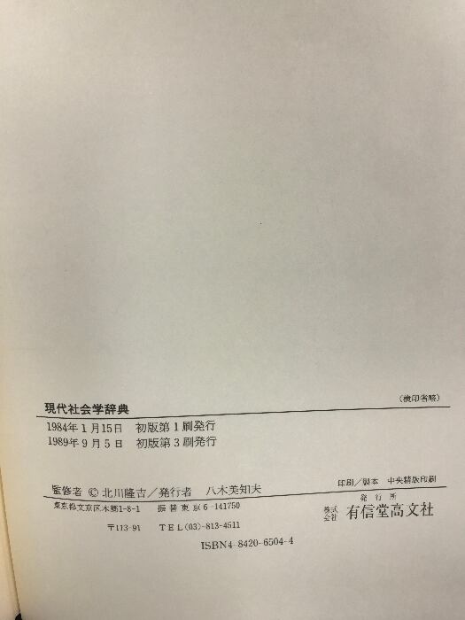 タイトル:現代社会学辞典 有信堂高文社 佐藤 守弘