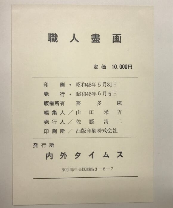 【図録】重要文化財 職人盡画 発行:内外タイムス 編:山田米吉 昭和46年