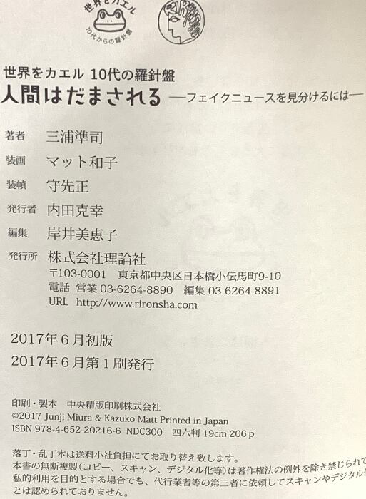 タイトル:人間はだまされる: フェイクニュースを見分けるには (世界をカエル10代からの羅針盤) 理論社 三浦 準司