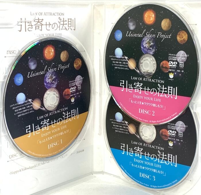タイトル:引き寄せの法則 Universal Share Project2015 日比谷公会堂9.21&TOKYO DOME CITY HALL10.2 ヒカルランド パム・グラウト DVD 3枚組