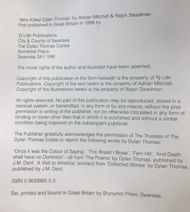Who Killed Dylan Thomas Ty Llen Publications AdrianMitchell