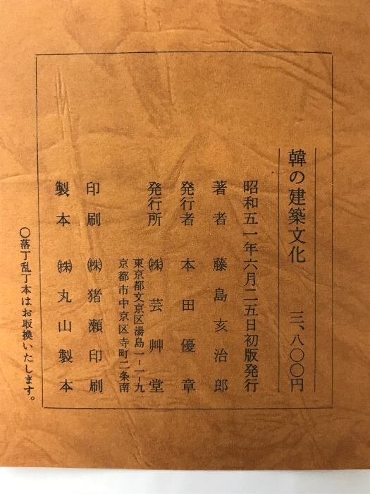 タイトル:韓の建築文化-わが研究50年- 芸艸堂 藤島亥治郎 昭和51年