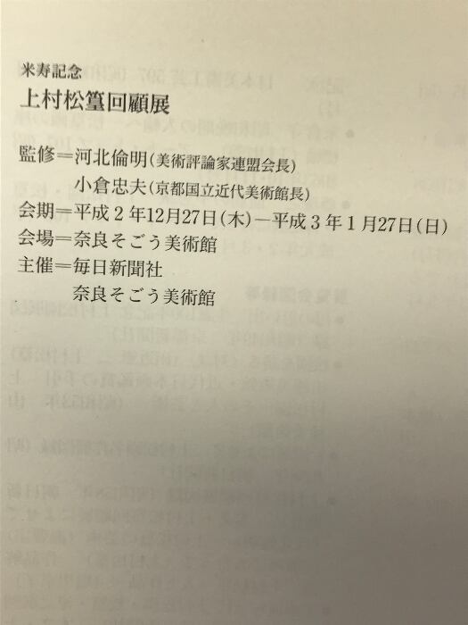 タイトル:【図録】上村松篁回顧展(米寿記念)毎日新聞社 奈良そごう美術館 平成2年~平成3年