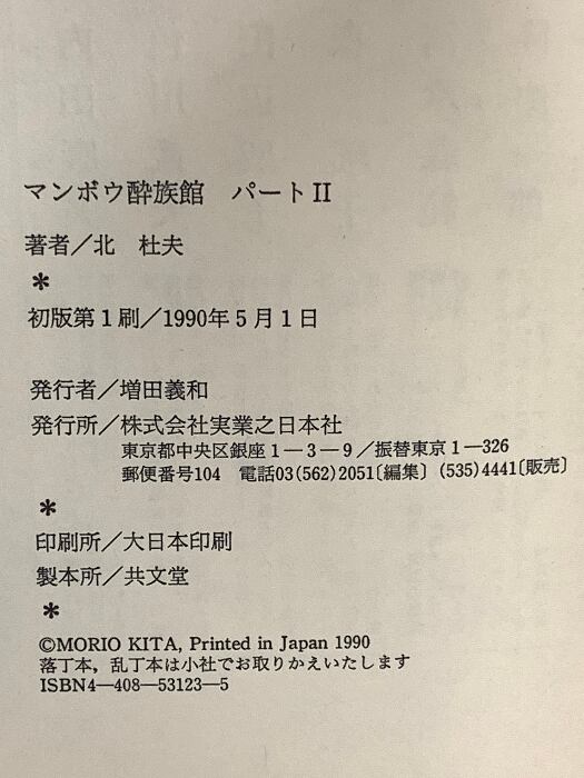 タイトル:マンボウ酔族館 パート2 実業之日本社 北 杜夫
