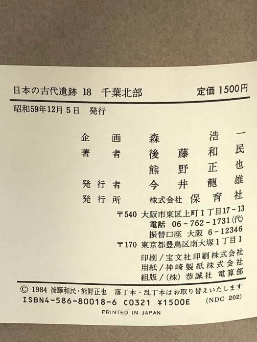 日本の古代遺跡 18 千葉北部 保育社 後藤 和民