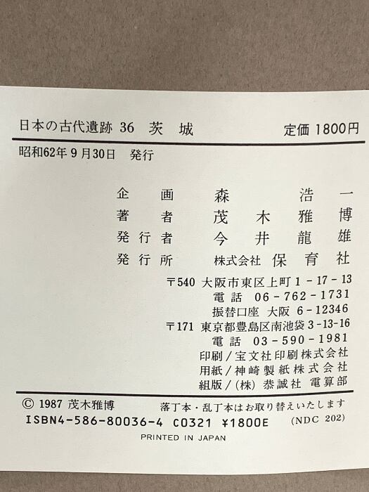 タイトル:日本の古代遺跡 36 茨城 保育社 茂木 雅博