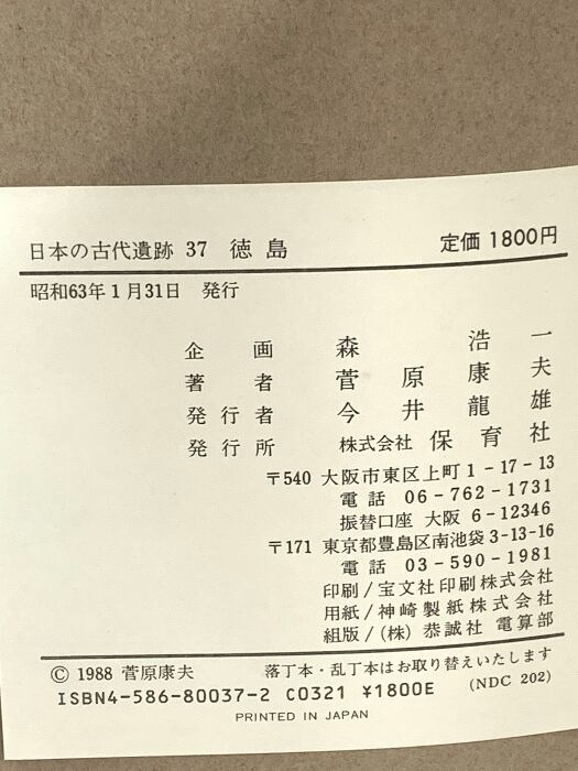 タイトル:日本の古代遺跡 (37) 徳島 保育社 菅原 康夫