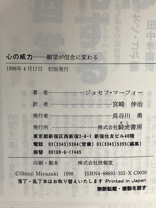 心の威力 きこ書房 ジョセフ マーフィー