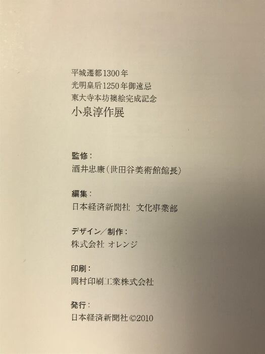 タイトル:【図録】小泉淳作展 平城遷都1300年 光明皇后1250年御遠忌 東大寺本坊襖絵完成記念 発行:日本経済新聞社 2010年