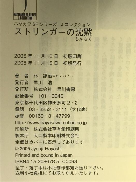 タイトル:ストリンガーの沈黙 (ハヤカワSFシリーズ Jコレクション) 早川書房 林 譲治