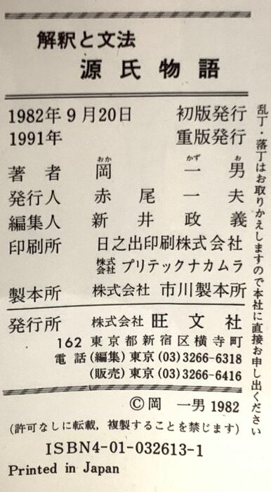 タイトル:解釈と文法 源氏物語 旺文社 岡一男